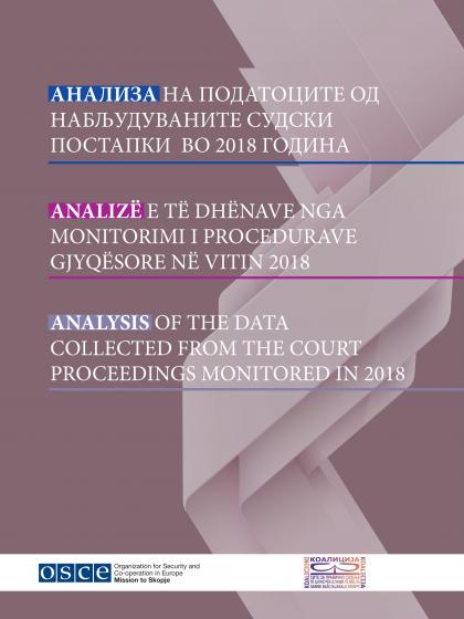 In the course of 2018, with an aim of supporting judicial and criminal justice reform, the OSCE Mission to Skopje supported trial monitoring of general crime cases before competent courts in all four appellate regions in the country, carried out by the civil society organization ‘All for Fair Trials’ Coalition, a network of 14 civil society organizations (CSOs). The trial monitoring aimed at increasing the public scrutiny over the justice sector by strengthening the capacities for sustainable and systematic trial monitoring by CSOs resulting in this analysis, which provides an insight into the implementation of the Law on Criminal Procedure. In addition, the analysis also offers recommendations for future interventions and activities aimed at enhancing the capacities of the judicial system in the country which, in turn, should lead to increased public trust in the legal system. English version starts from page 121.