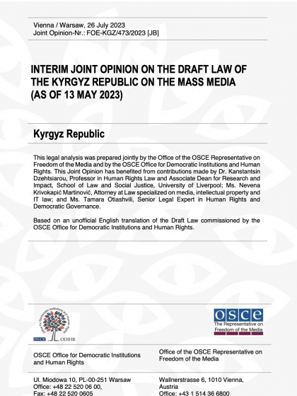 OSCE/ODIHR Interim Joint Opinion on the Draft Law of the Kyrgyz Republic on the Mass Media