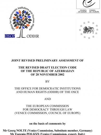 Joint Revised Preliminary Assessment of the Revised Draft Election Code of 28 November 2002 in Azerbaijan