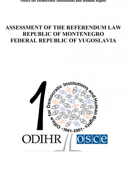This assessment reviews and comments on the Law on Referendum, dated 19 February 2001, for conducting referendums in the Republic of Montenegro/Federal Republic of Yugoslavia. This assessment is based on unofficial English translations of the following: (1) the Referendum Law, consisting of forty-four (44) articles, (2) Law on the Election of Councillors and Representatives of the Republic of Montenegro (2000),2 (3) Law on Registers of Electors of the Republic of Montenegro (2000),3 (4) Citizenship Law of the Republic of Montenegro (1999),4 (5) Constitution of the Republic of Montenegro (1992), (6) Constitution of the Federal Republic of Yugoslavia (1992), and (7) Citizenship Law of the Federal Republic of Yugoslavia (published in the Official Gazette of the Federal Republic of Yugoslavia, No. 33/96). This assessment reviews and comments on the text of the Referendum Law only, and should not be construed as an endorsement or recommendation for a referendum in the Republic of Montenegro; nor should this assessment be construed as an endorsement or approval of any question that may be subsequently decided by a referendum.