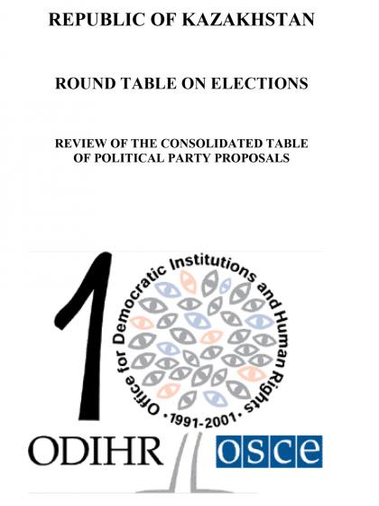 Roundtable on Elections, Review of the Consolidated Table of Political Party Proposals in Kazakhstan in the Republic of Kazakhstan