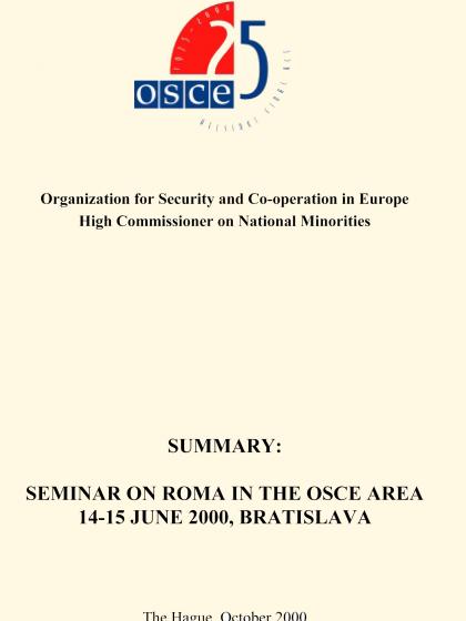 Proceedings of a seminar organized in Bratislava on 14-15 June 2000 as a follow-up to the Report on the Situation of Roma and Sinti in the OSCE Area.