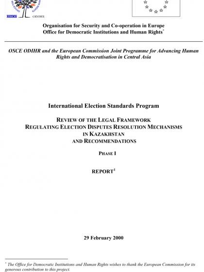 The present report, which includes 47 recommendations on the Kazakhstani legal framework governing the election disputes resolution mechanisms, constitutes the first phase of the OSCE ODIHR International Election Standards Programme in Kazakhstan.