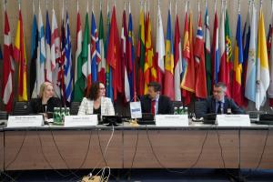 Speakers at the Joint Meeting of the Forum for Security Co-operation and the Permanent Council, Vienna, 12 July 2023.