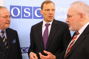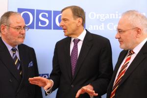 L-r: The Co-Chairs of the OSCE Minsk Group, Ambassadors Jacques Faure of France, Robert Bradtke of the United States, and Igor Popov of the Russian Federation, after their address to the OSCE Permanent Council, Vienna, 22 March 2012.