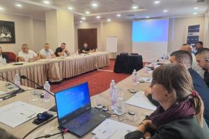 (c-l) Ivan Jokić, Head of the Criminal Intelligence Unit of the Police Directorate of Montenegro, and (c-r) Toni Škrinjar, Organized Crime Police Adviser in the OSCE Mission to Montenegro, with the participants of the five-day workshop on intelligence-led policing in Podgorica, 2 October 2023.