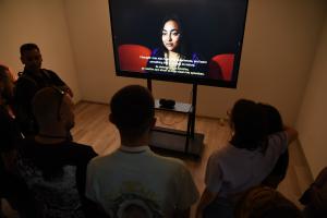 Visitors watch interviews of “How Do I See You? – Kosovo” participants, Prizren, 8 August 2023