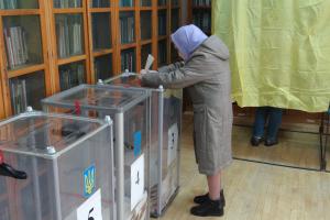 A voter casting her ballot in Kyiv for Ukraine's local elections, 25 October 2020.