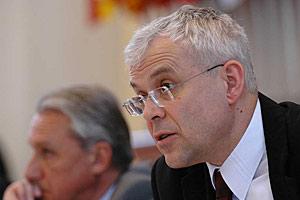 Chairperson of the Economic Forum and Head of the OSCE Task Force, Ambassador Boris Frlec, (left) and ODIHR Director, Christian Strohal at the Thirteenth OSCE Economic Forum, Prague, 23 May 2005.