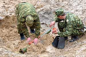 Belarusian military prepare to destory shoulder fired "Strela-IIM" anti-aircraft missiles near Sluck, Belarus, 25 May 2005. This was part of OSCE efforts to eliminate surplus small arms and light weapons.