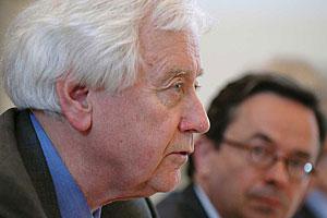 OSCE High Commissioner on National Minorities, Rolf Ekeus (left), and ODIHR Director, Christian Strohal at the Economic Forum, Prague, 23 May 2005.