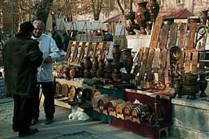 A market in central Yerevan offers a wide and sometimes curious selection of wood-carved and ceramic items.