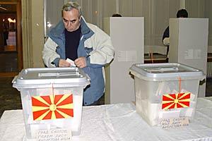 Voters in Skopje cast four different ballots during municipal elections in the former Yugoslav Republic of Macedonia, 13 March 2005.