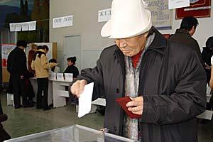 A voter in Bishkek casts his ballot during Parliamentary Elections in Kyrgyzstan, 27 February 2005.