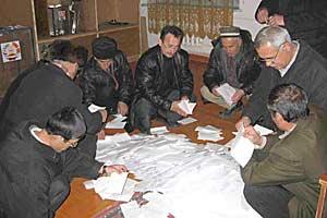 Election officials counting votes at a polling station in the southern town of Kulyab during parliamentary elections in Tajikistan, 27 February 2005.