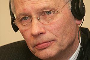 Hans van den Broek of the Netherlands at the first meeting of the OSCE Panel of Eminent Persons at Brdo pri Kranju, 17 February 2005.