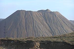 A 300 metres high radioactive waste hill raises above Taboshar City (Tajikistan). The waste is spread and washed out by the winds and rains, potentially damaging the environment and human health.