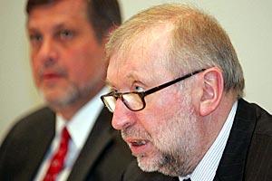 OSCE Chairman-in-Office Dimitrij Rupel (front) and OSCE Secretary General Jan Kubis at the Troika meeting in Vienna, 14 January 2005.