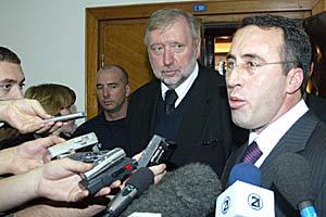OSCE Chairman-in-Office Dimitrij Rupel (left) meets with Kosovo Prime Minister Ramush Haradinaj in Pristina, 11 January 2005