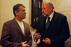 OSCE Chairman-in-Office, Slovenian Foreign Minister Dimitrij Rupel (left), meeting Ukrainian Parliament Speaker Volodymyr Lytvyn in Kyiv, 5 January 2005.