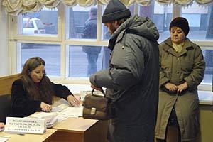Voters registering at a polling station in Kyiv during the repeat second round of the presidential election on 26 December 2004.