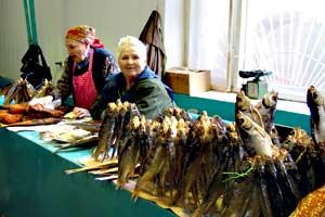 Vendors wait for customers at a fish market in Atyrau, Kazakhstan, 2004.