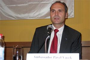 Ambassador Pavel Vacek presents his priorities to the Albanian media at his first press conference as Head of the OSCE Presence in Albania, Tirana, 5 November 2004.