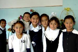 Schoolchildren in the village of Sarzhal, in Kazakhstan. Picture taken in 2004.