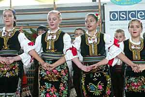 First-graders of three elementary schools in Vojvodina took part in performances after the presentation of a specially designed notebook "My house is in Europe", 8 November 2004.