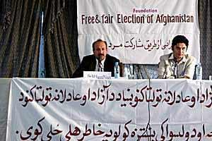 Representatives of the Free and Fair Elections Foundation for Afghanistan explains to the media their plan to deploy 2,000 domestic observers for the 9 October 2004 presidential election.
