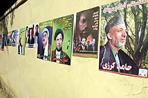 Pre-election posters in Kabul, 7 October 2004. Afghanistan held its first-ever presidential election on 9 October.