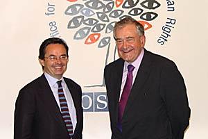 Council of Europe Secretary General Terry Davis (right) visited the OSCE's Office for Democratic Institutions and Human Rights on 1 October 2004 and met Director Christian Strohal.