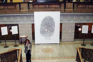 A fingerprint made up of the Universal Declaration of Human Rights was the symbol for an OSCE conference in Helsinki on protecting the rights of trafficking victims, 23-24 September 2004.