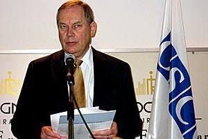 International experts on jury trials at an OSCE/ODIHR conference in Astana. Judge Christof Rennig (left) and Prof. Stephen Thaman, author of an analysis of the Kazakh draft laws on introducing jury trials.