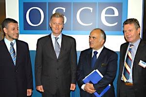 From left to right: OSCE Chairman Solomon Passy, Prince Philip of Belgium, Prince Hassan of Jordan and Belgian Foreign Minister Karel De Gucht at the OSCE conference on Tolerance in Brussels, 13 September 2004.