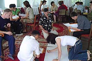 Lawyers and law students take part in a 10-day summer school in Osh, Kyrgyzstan, in August 2004. The workshop focused on running streetlaw clinics, which teach people to use the law to defend their rights.