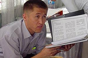A young lawyer takes part in interactive training during a summer school in Osh, Kyrgyzstan, in August 2004. The workshop focused on running streetlaw clinics, which teach people to use the law to defend their rights.