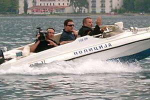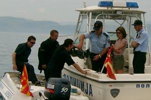On-the-spot filming: the OSCE Mission in Skopje is raising awareness of community policing through a country-wide TV campaign, July 2004.