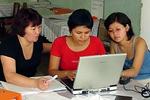 Ambassador Ivar Vikki, Head of the OSCE Centre in Almaty, and Raushan Sarsenbayeva, president of Kazakhstan Business Women Association, launched a one-year project for Kazakh returnee women, Almaty, 29 July 2004.