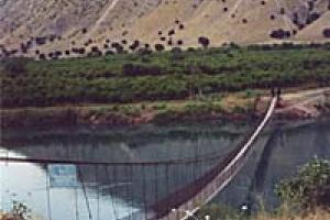 Beautiful lake scenery of the Norak Dam, south of the Tajik capital, Dushanbe, July 2004.