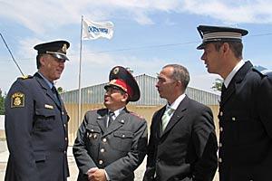 Experts from the OSCE Police Assistance Programme in Kyrgyzstan, representing (l. to r.) Sweden, Kyrgyzstan, Russia and France, after a graduation ceremony at the Bishkek Police Academy, 26 June 2004.