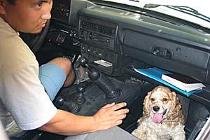 "Boy", a sniffer dog used by mobile police groups to search for narcotics, with his owner in Bishkek, June 2004. Mobile teams were created and equipped with vehicles and drug-scenting dogs under the OSCE Police Assistance Programme for Kyrgyzstan.