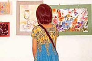 Visitors in a children's picture exhibition organized by the OSCE Centre in Ashgabat, June 2004.