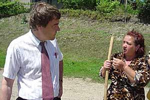 A moment of play during a children's picture exhibition organized by the OSCE Centre in Ashgabat, June 2004.