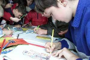 A large number of children competed for kid-police T-shirts at the community policing drawing contest organized at the first Police Open Day in Veles, 30 May 2004