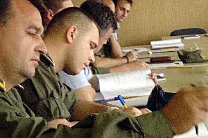 Border police officers attend a managerial course provided by the OSCE Spillover Monitor Mission to Skopje, at Kavadarci Regional Headquarters, 14 June 2004.