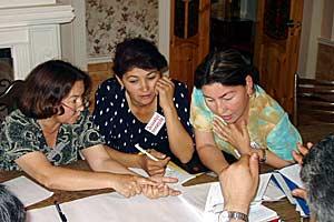 Participants discuss election rights and responsibilities of citizens in Samarkand, 2 June 2004, at a training course of the OSCE Centre in Tashkent for domestic election observers.