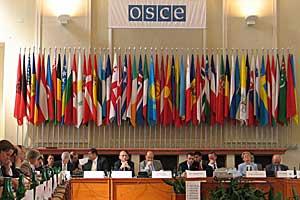 Flags of the OSCE participating States at the 12th OSCE Economic Forum in Prague, 31 May 2004.