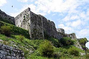 The ancient fortress of Rozafa is the most prominent landmark in Shkodra. According to legend, a young mother named Rozafa was confined alive so the fortress could be built, April 2004.