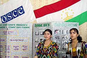 The opening of the first centre for women in Kurghon-Teppa, Tajikistan, 18 May 2004. Created by the OSCE Centre in Dushanbe, it will help empower women in Tajik society and offer new skills, free psychological and legal consultations.